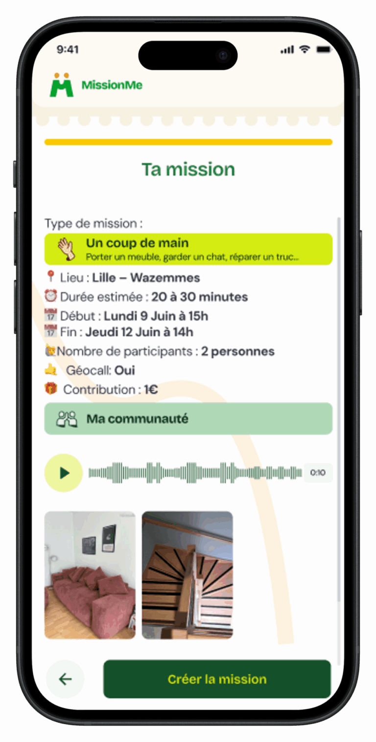 Tu aimerais pouvoir recevoir de l’aide de temps à autre ? Tu veux te rendre utile mais tu ne sais pas comment ? MissionMe t’offre ces deux possibilités en une seule application sécurisée et ludique.
