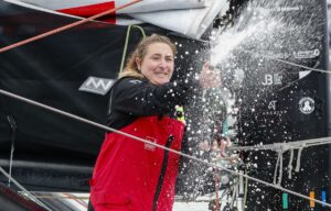 Après 24 000 milles nautiques, des vagues de 10 mètres et des vents à décorner un bœuf, Violette Dorange est venue à bout du Vendée Globe… et de ce magnum de champagne !